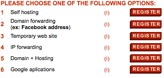 If you already have a website and you want a easy address to it, choose the Domain forwarding option, indicating which the current address of your website.